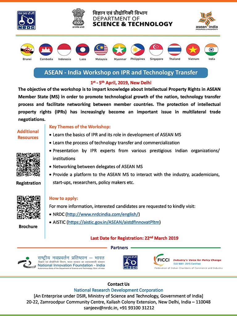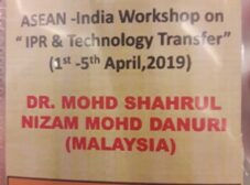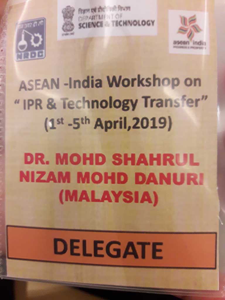 I was a representative from Malaysia (there two of us) for attending the ASEAN-India Workshop on Intellectual Property Rights & Technology Transfer in New Delhi, 1st – 5th April 2019. The workshop’s objective is to impart knowledge about Intellectual Property Rights in ASEAN Member State (MS) to promote technological growth of the nation, technology transfer process, and facilitate networking between member countries.